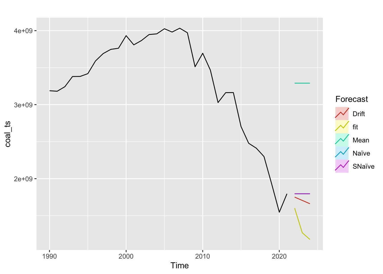 With the above exploration, a best fit model is chosen for each energy source by minimizing AIC.