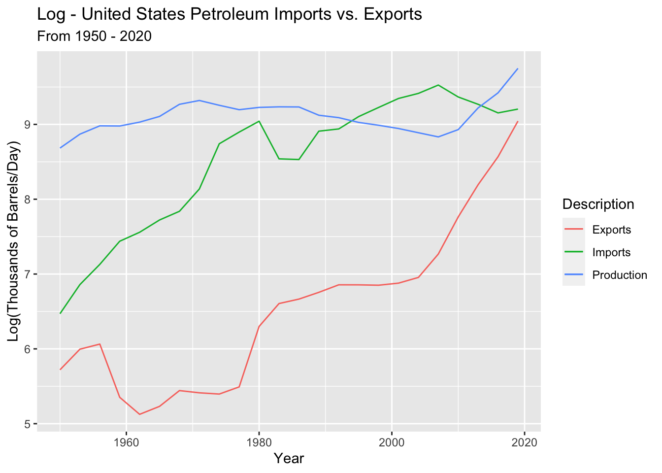 From EDA, we looked at ACF graphs and checked ADF to see if the data was stationary. The data was not stationary so we’ll take the log to try to make it at least weakly stationary.