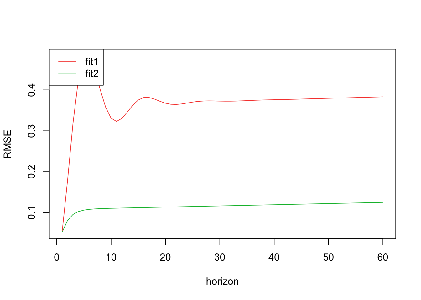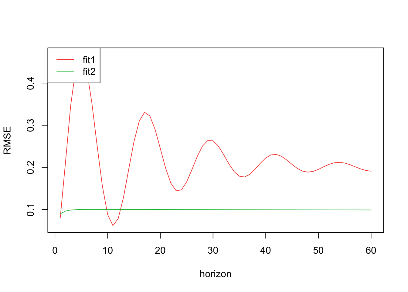 From this, it appears that ARIMA(2,0,1)(0,1,2) has much more variable RMSE, but overall is a better fit model