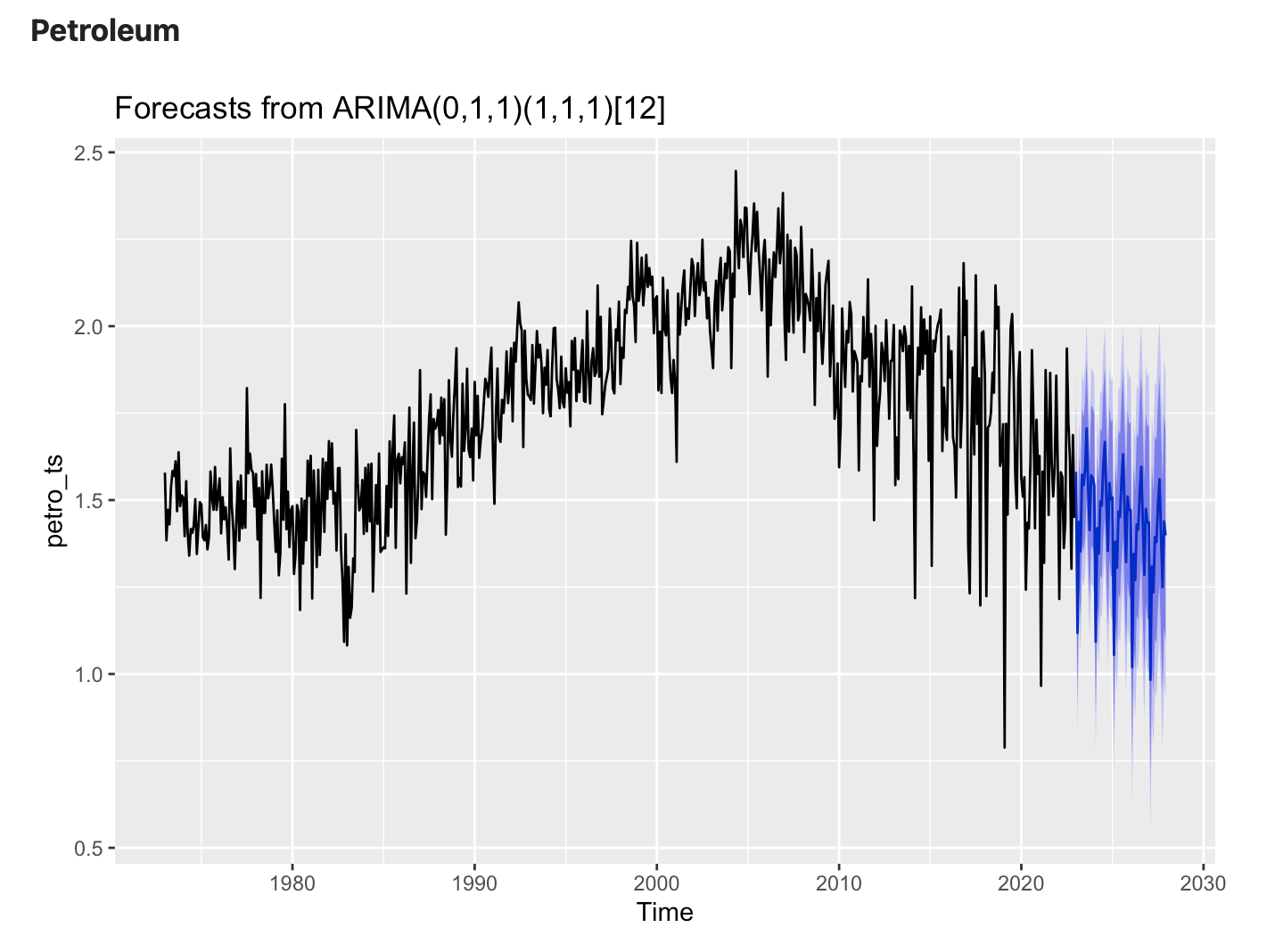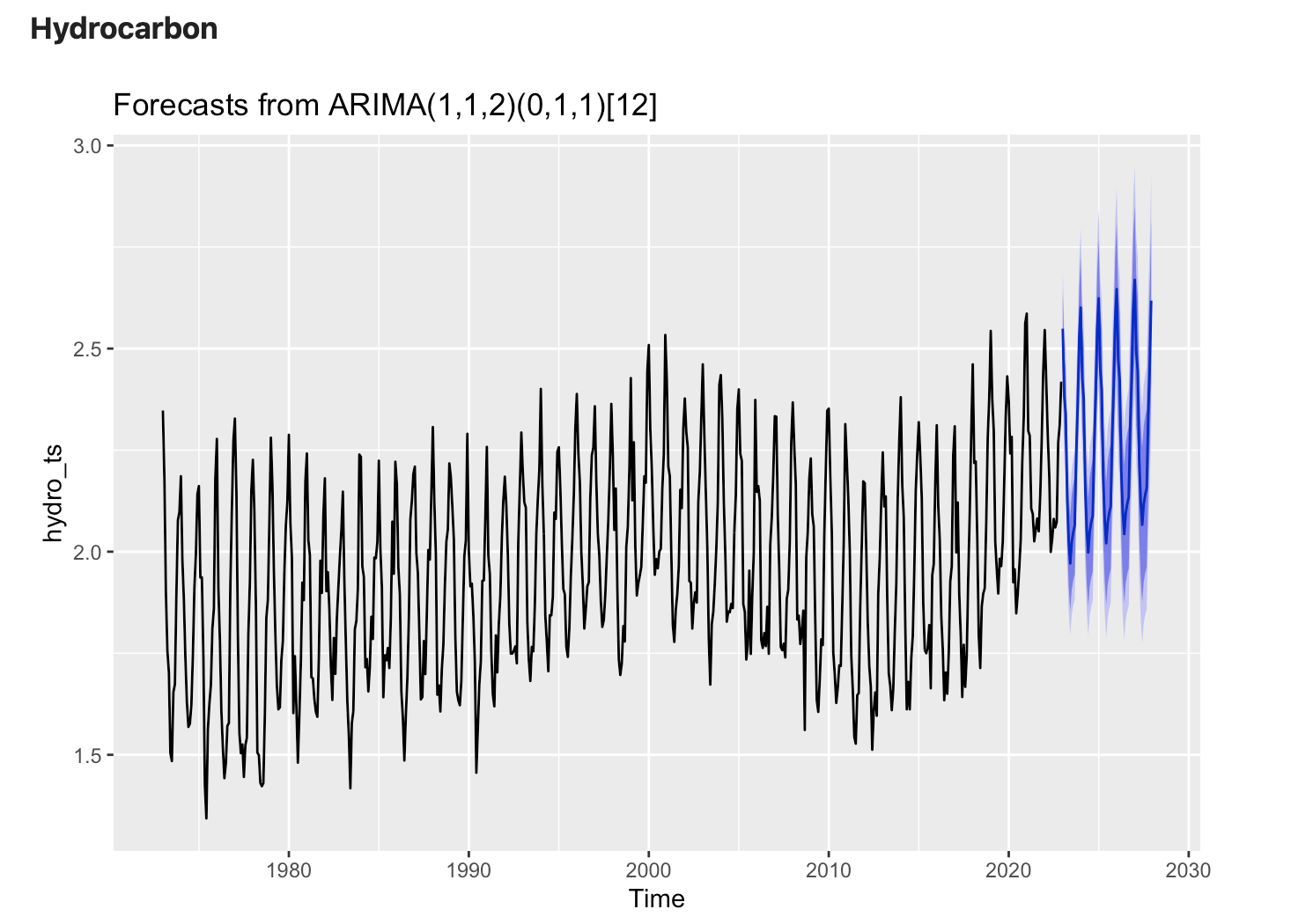 The reason for looking at all of this data is to get a better sense of which fuel sources contribute the most to CO2 emissions currently, and how that is forecasted to change in the future. As the US and the world grapple with ways to change our fuel consumption to fight climate change, clean up the air and water, and prevent as much CO2 combustion as possible, it’s important to understand CO2 emissions projections for each possible fuel source. Looking at extremely dirty fossil fuel sources (coal, petroleum, hydrocarbon) and comparing their projected CO2 emissions with that of the slightly cleaner natural gas can provide insights into how CO2 emissions are projected to change if we continue on a business as usual path. Unfortunately, detailed information on CO2 emissions for fuel sources like nuclear, wind, and solar were unavailable at this time. A key takeaway from the graphs below is that CO2 emissions from Coal and Petroleum are forecasted to decrease in the next 5 years at current rates. This is great news! Hydrocarbon gas (e.g. methane, ethane, propane, and butane) are also fossil fuels and CO2 emissions from their combustion is unfortunately expected to increase over the next 5 years. We can decrease hydrocarbon gas emissions by reducing meat consumption (methane) and implementing electric stoves instead of gas stoves (propane, etc.). Finally, CO2 emissions from natural gas is expected to increase as well. This makes sense, as seen above natural gas production is steadily increasing to fill in gaps left by coal production. Ensuring that we rely on natural gas only as a bridge fuel source to cleaner fuels (such as nuclear, wind, geothermal, etc.) is critical in order to reduce total CO2 emissions. ARIMA and SARIMA models were used to understand this question.